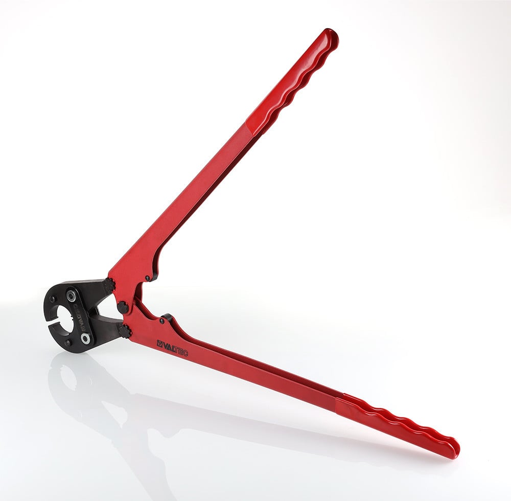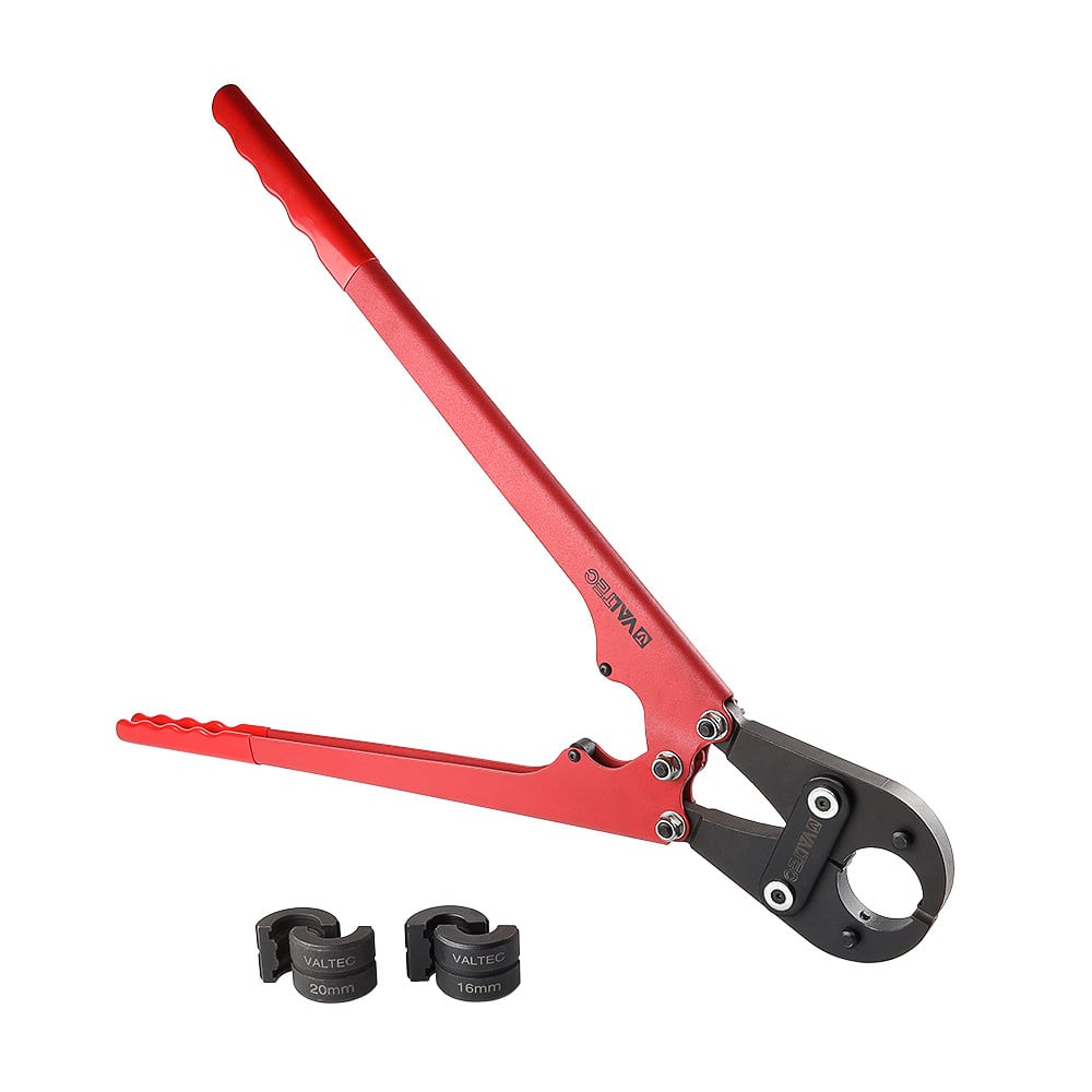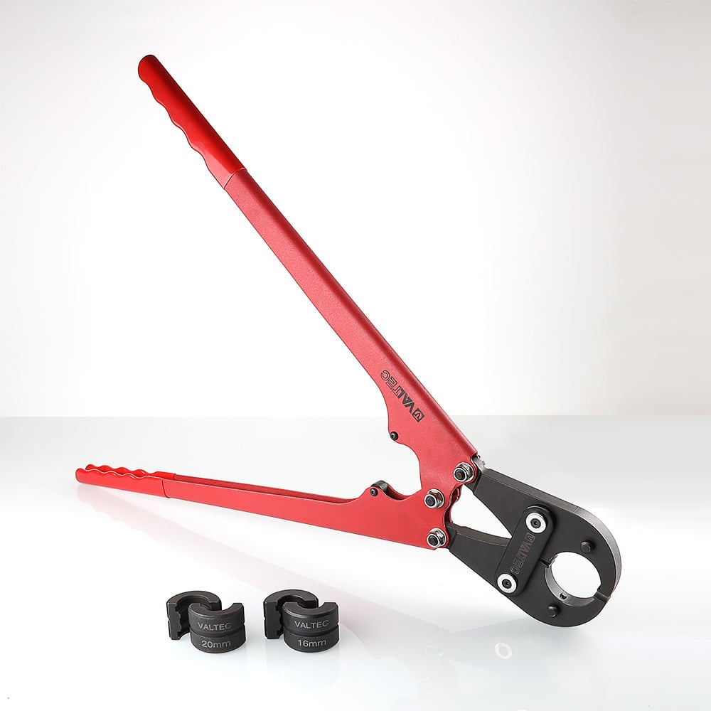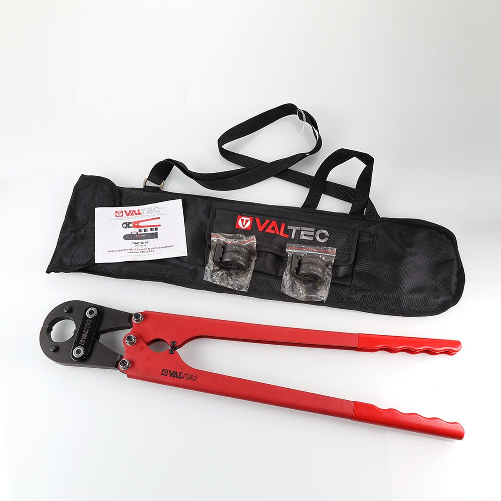 (VTm.293.L) Малогабаритные пресс-клещи VALTEC обеспечивают ручное обжатие фитингов при монтаже металлополимерных, пластиковых труб диаметром 16, 20 мм. Профиль используемых насадок – ТН. Отсутствие телескопических рукояток требует больших усилий (расчетное значение – 150 Н), чем при работе со стандартным пресс-инструментом. Усилие обжатия гильзы – 10,5 кН. Средний полный ресурс – 5000, наработка на отказ – 2500 циклов. Масса пресс-клещей без насадок – 2,49 кг. Рукоятки инструмента оснащены ПВХ-покрытием. Осевые эксцентрики позволяют производить настройку клещей при появлении избыточных люфтов.