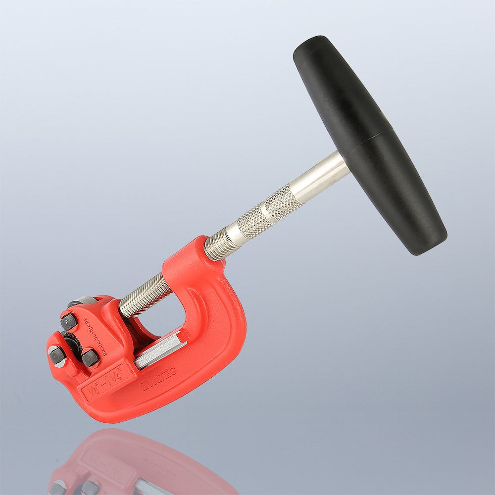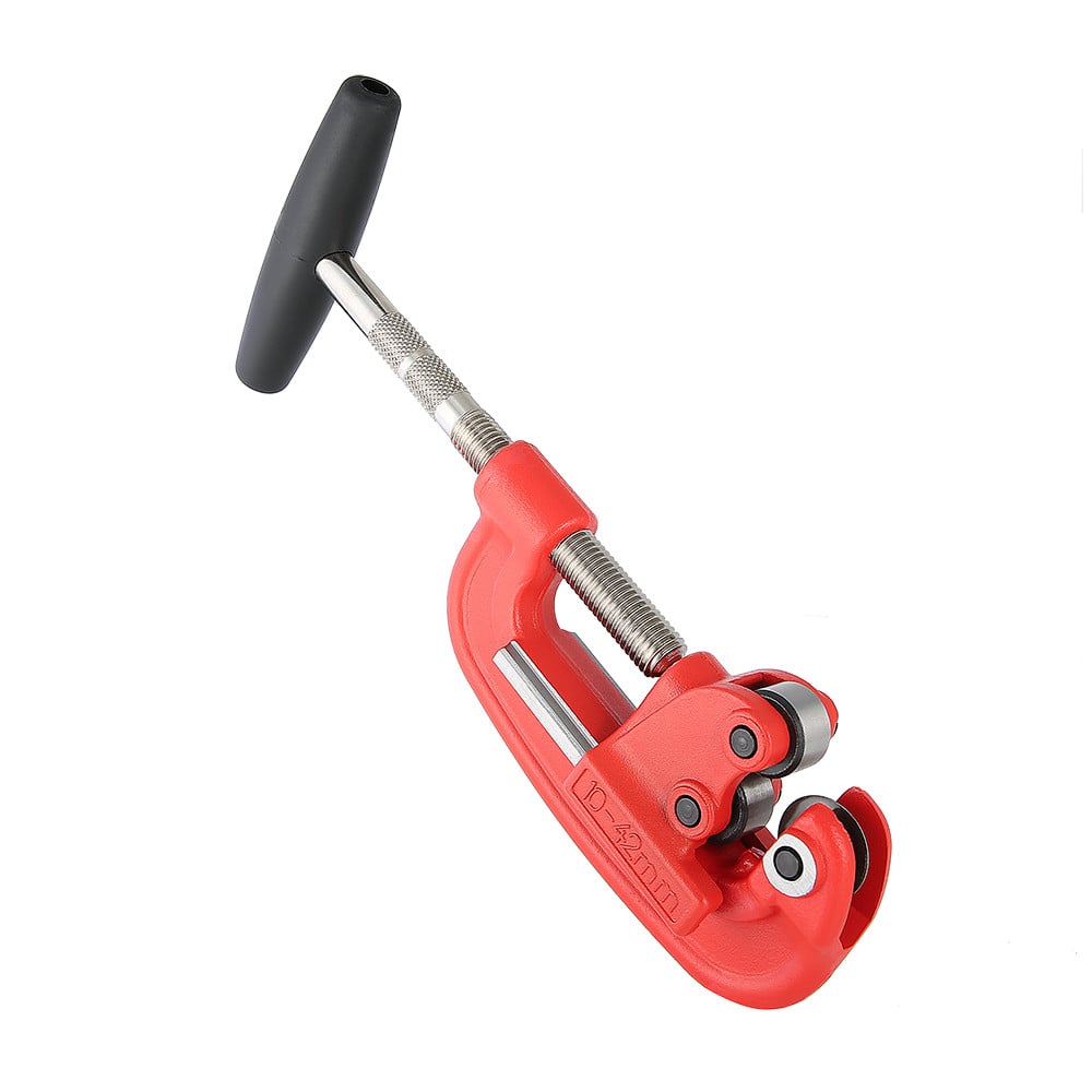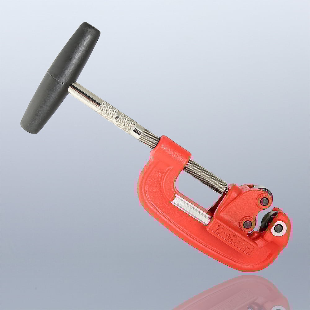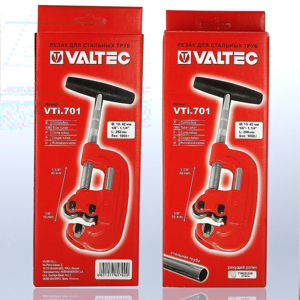 (VTi.701.0) Труборез VTi.701 предназначен для быстрой резки труб из обычной и нержавеющей стали диаметром от 10 до 42 мм. Конструкция резака обеспечивает оптимальную передачу усилия на трубу. Материал режущего диска (ролик отрезной для стальных труб) – закаленная высоколегированная сталь. Широкие ролики гарантируют надежный ход диска по трубе. Используя резак для стальных труб VTi.701, можно непосредственно после резки приступать к нарезанию резьбы, поскольку грат не образуется.