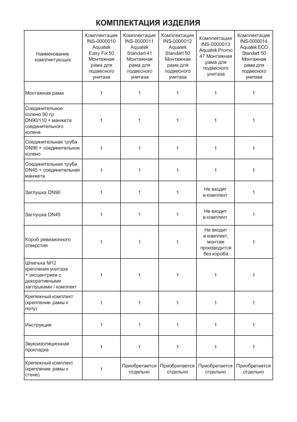 • Панель смыва приобретается отдельно. Рекомендуемые панели смыва – производства Aquatek
