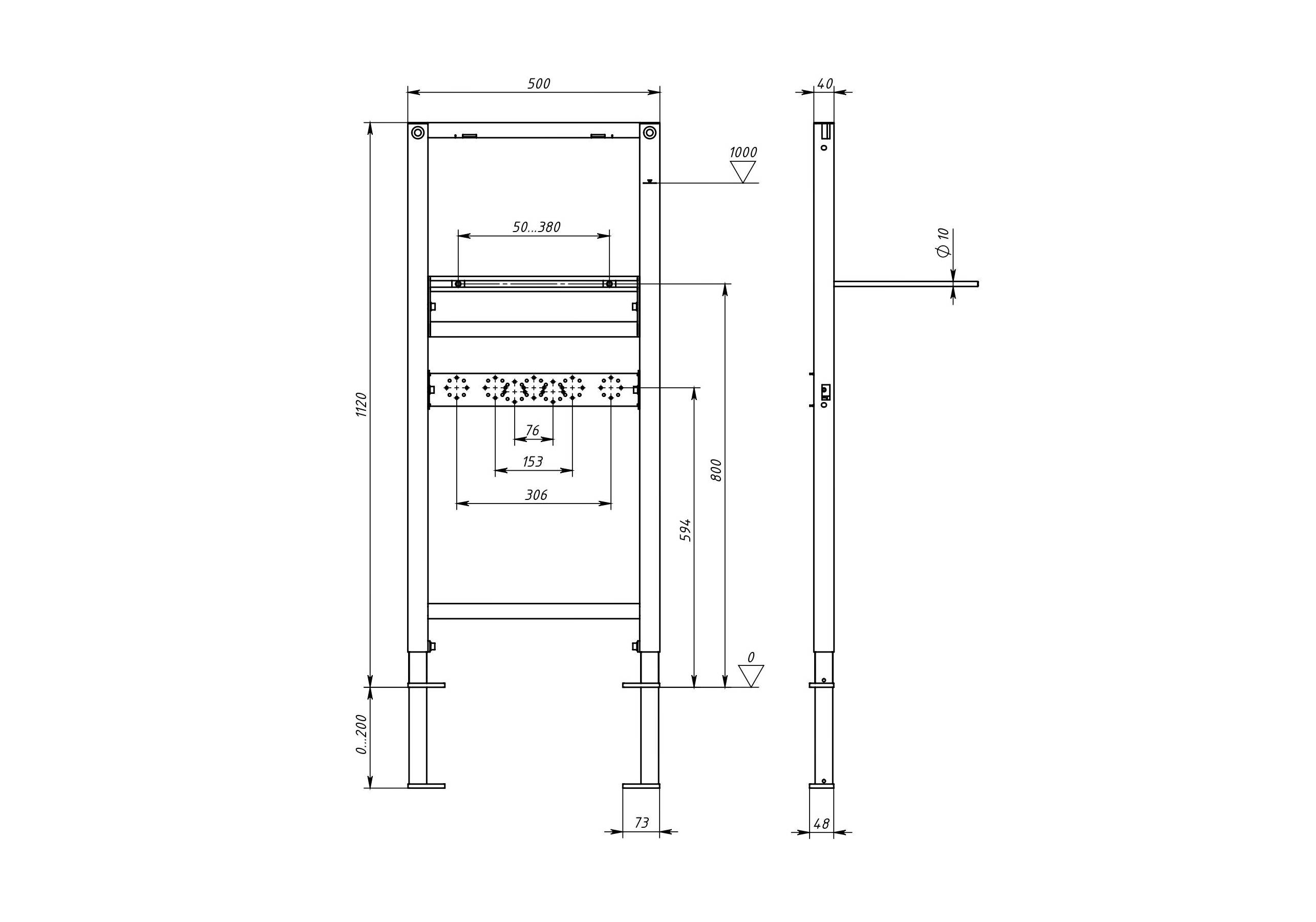 • Монтажные перекладины легко регулируются, что позволяет установить раковину на нужной и комфортной высоте