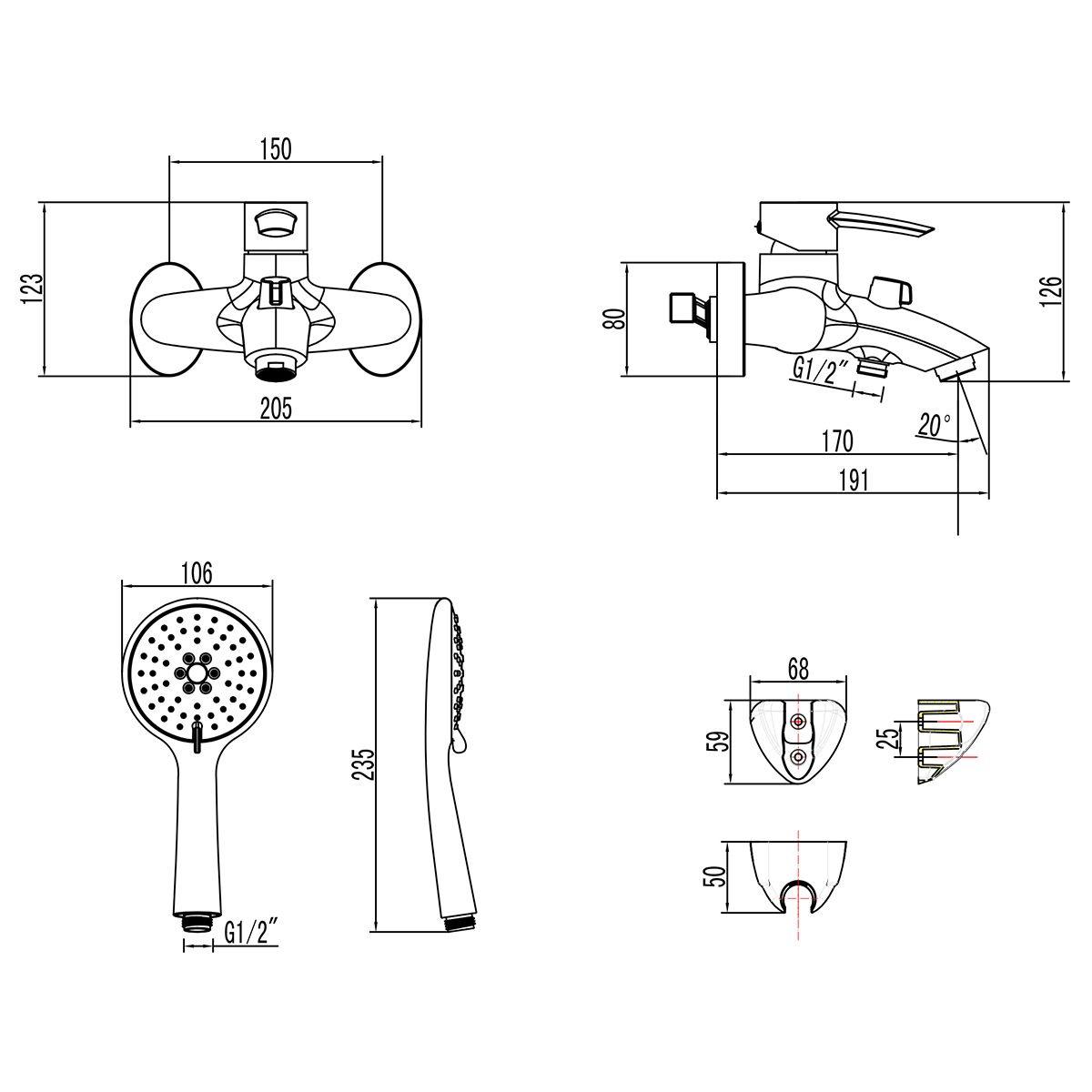 Серия смесителей ATLANTISS. Комплектация: Аэратор Керамический эко-картридж картридж 35 мм Переключатель с керамическими пластинами (угол поворота - 90⁰) Аксессуары в комплекте: шланг 1,5 м, настенное фиксированное крепление, 3-функциональная лейка;106х235 мм Присоединительная группа для настенного крепления ½” Металлическая рукоятка