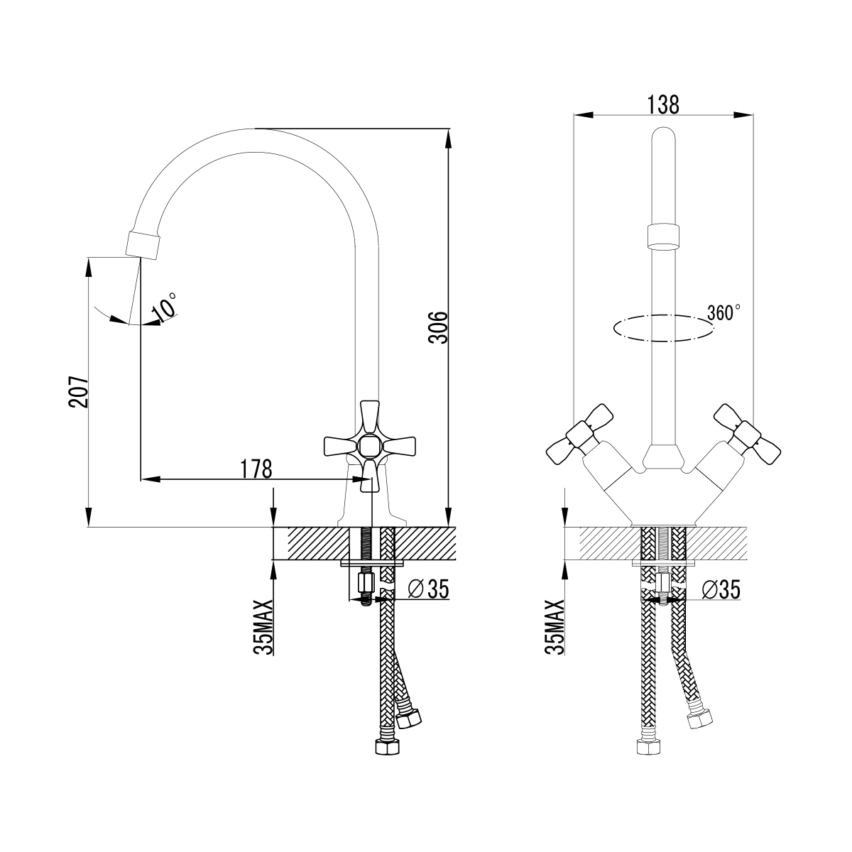 BENEFIT - "два плюса в ваших руках". Смесители этой серии идут в 2-х ручковом крестообразном исполнении.Комплектация:Аэратор Neoperl Cascade Кран-буксы с керамическими пластинами (угол поворота - 180°)Гибкая подводка ½” 35 см Присоединительная группа для настольного крепления Металлические рукоятки