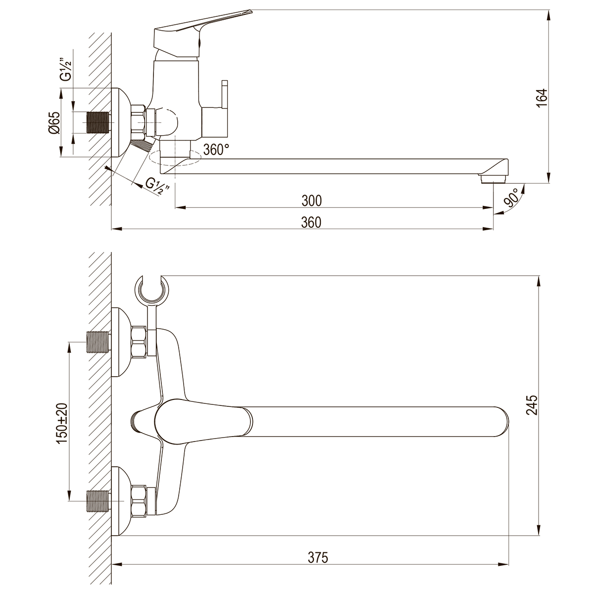Серия PARTNER. Комплектация: Аэратор Керамический картридж 35 мм Переключатель с керамическими пластинами (угол поворота - 120 град;) Аксессуары в комплекте: шланг 1,5 м, 1-функциональная лейка ;66х196 мм Присоединительная группа для настенного крепления ½” Металлические рукоятки