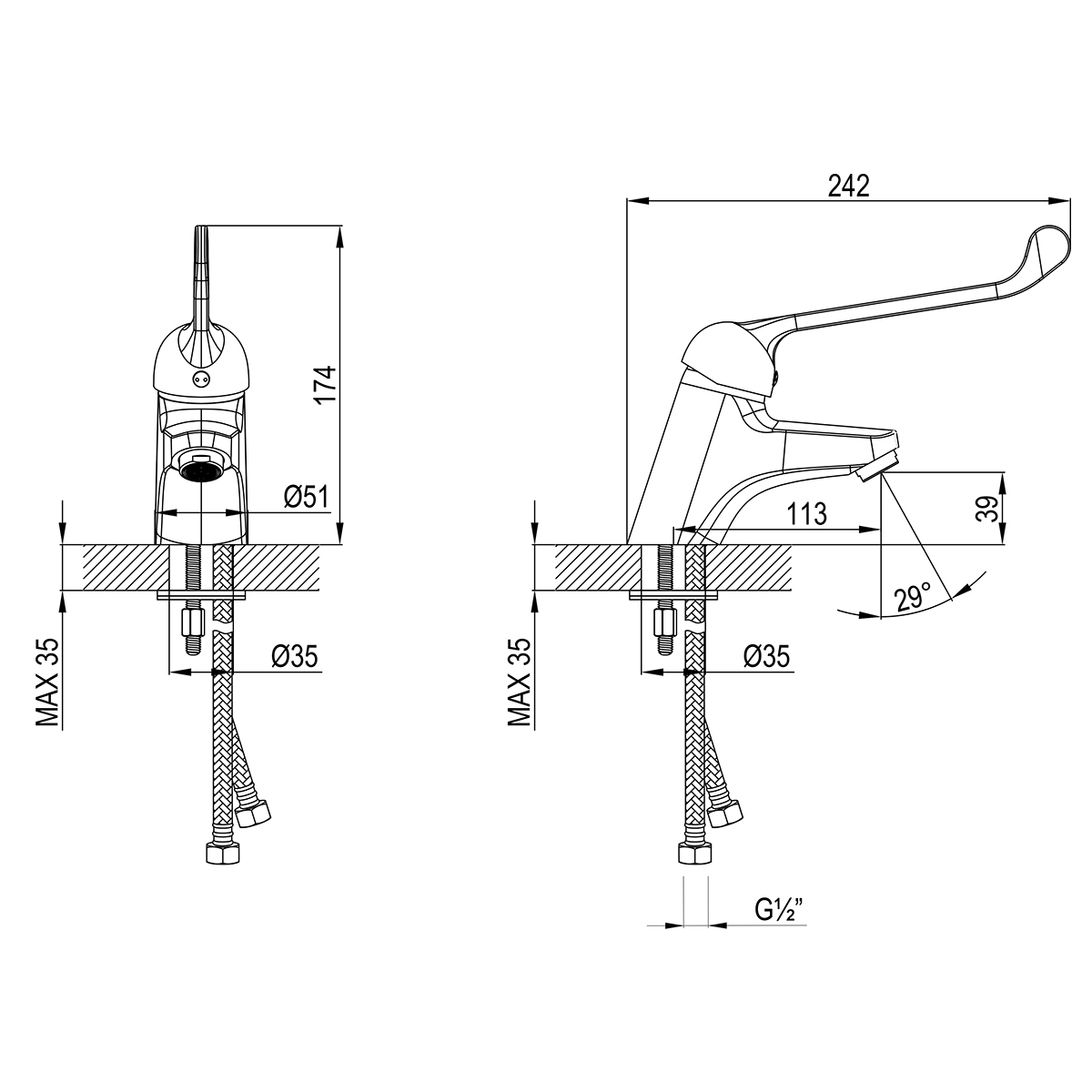 Серия смесителей PROJECT - всегда в основе успешных проектов.Комплектация:Ламинарный регулятор расхода воды Neoperl Perlator Керамический картридж 40 мм Гибкая подводка ½” 35 смМеталлическая рукоятка