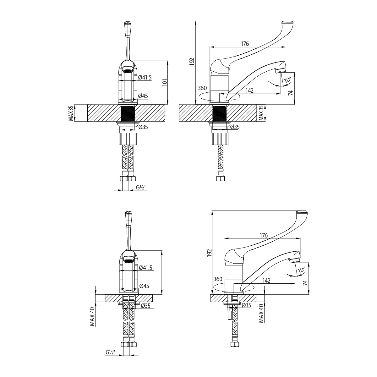 Серия смесителей PROJECT - всегда в основе успешных проектов. Комплектация: Аэратор пластиковый, ламинарного потока Керамический картридж 35 мм Гибкая подводка ½” 35 см Присоединительная группа для настольного крепления - 2 комплекта Металлическая рукоятка