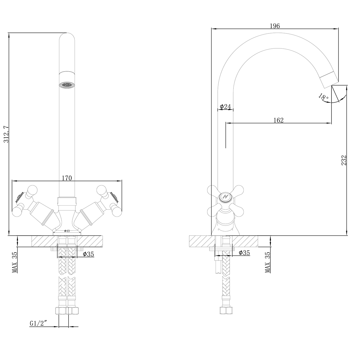 Серия PROMOTION - в сердце каждой кухни. Комплектация: Аэратор Кран буксы с керамическими пластинами (угол поворота 180°) Гибкая подводка ½” 40 см Присоединительная группа для настольного крепления Металлические рукоятки