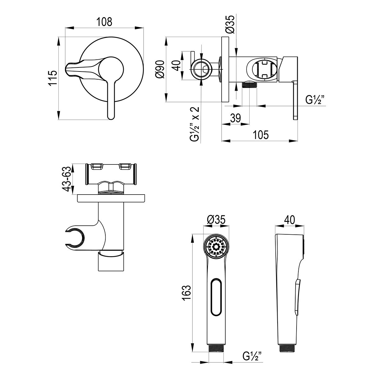 Серия SOLO - культ комфортной жизни.Комплектация: Керамический картридж 25 мм Аксессуары в комплекте: лейка гигиенического душа с нажимным механизмом, душевой шланг 1,2 мДиаметр подсоединения к водопроводу - ½”Металлическая рукоятка