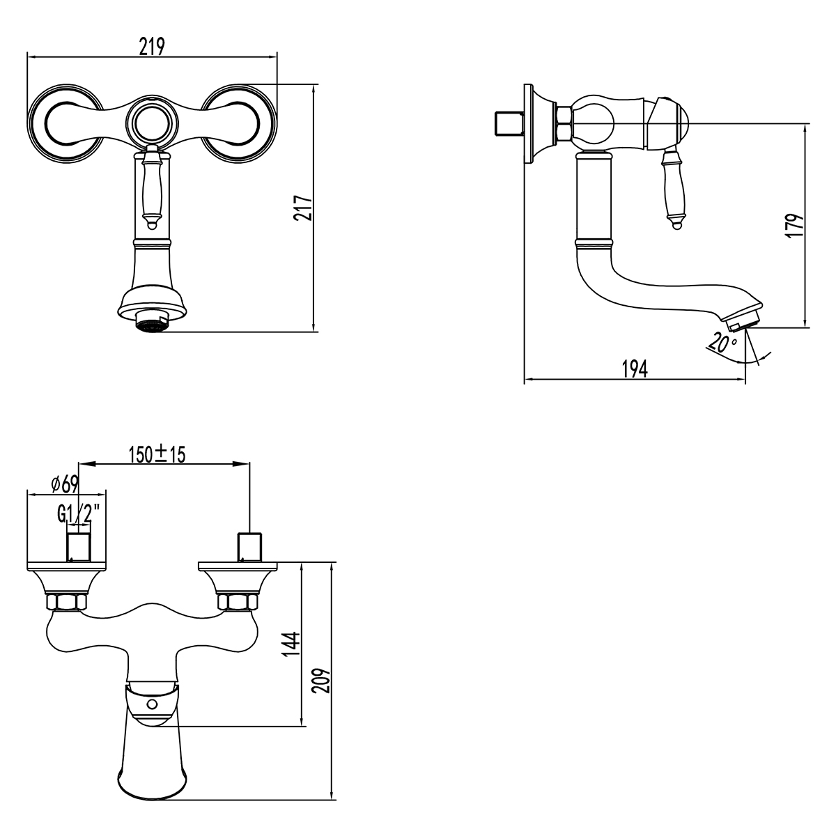 Серия VILLA - благородное обаяние вечных ценностей. Комплектация: Поворотный излив с аэратором Neoperl Cascade Керамический картридж Sedal 35 мм Присоединительная группа для настенного крепления ½”