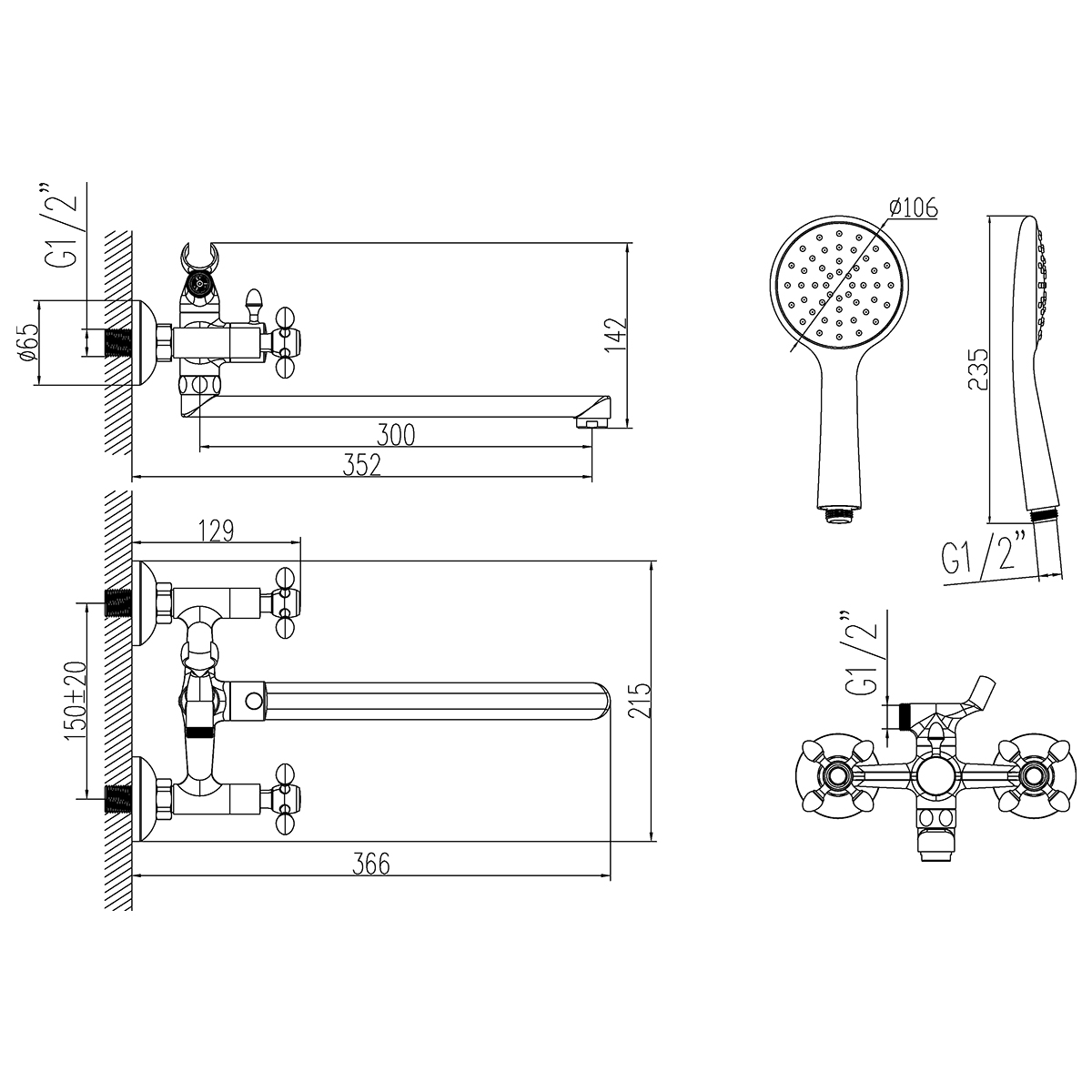 Серия VISTA.Комплектация: АэраторКран-буксы с керамическими пластинами (угол поворота – 90°) Переключатель с керамическими пластинами (угол поворота – 120°) Аксессуары в комплекте: шланг 1,5 м, 1-функциональная лейка Ø106x235 мм Присоединительная группа для настенного крепления ½” Металлические рукоятки