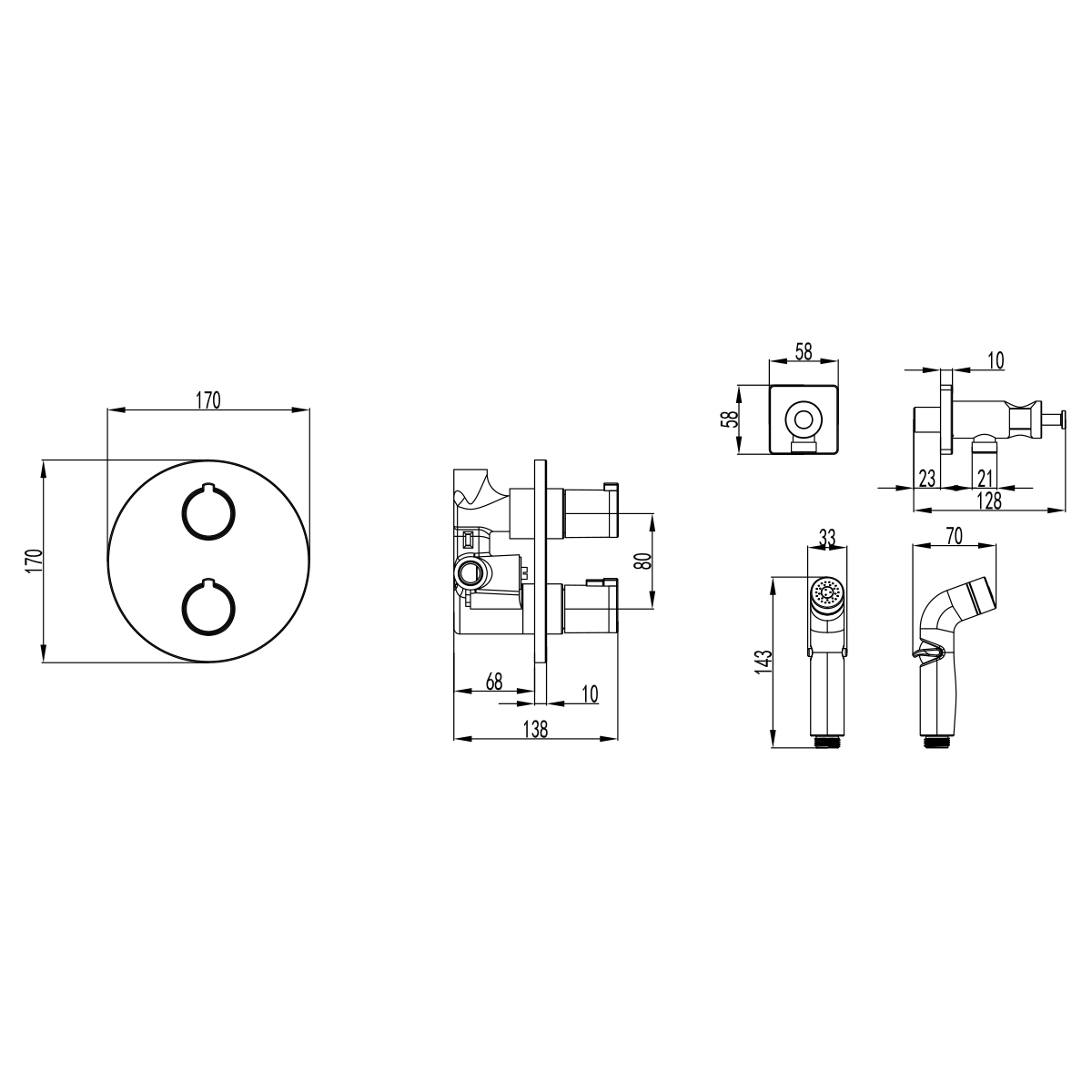 —Смеситель Lemark Yeti LM7819C с гигиеническим душем термостатический встраиваемый