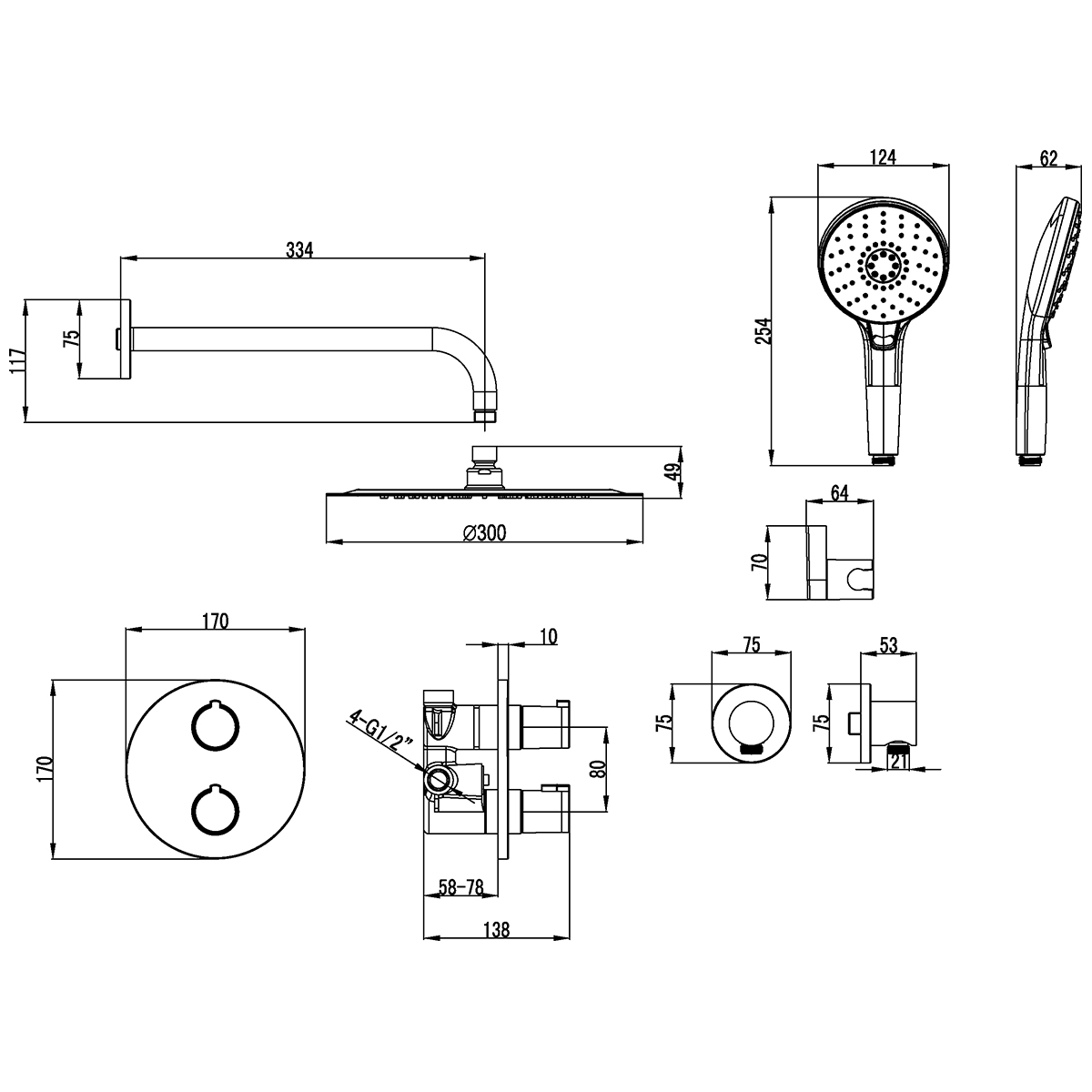 Серия YETI.Комплектация:Термостатический картридж Sedal с гелевым термоэлементом и фиксаторомТрехпозиционный картриджный переключатель (угол поворота - 360⁰) Верхняя поворотная душевая лейка «Тропический дождь» Ø300 мм3-функциональная лейка Ø120 ммНастенное поворотное крепление для лейкиДушевой шланг 1,5-2 м, растяжной, с функцией вращения лейки без перекручивания Подключение для душевого шлангаПластиковые рукоятки