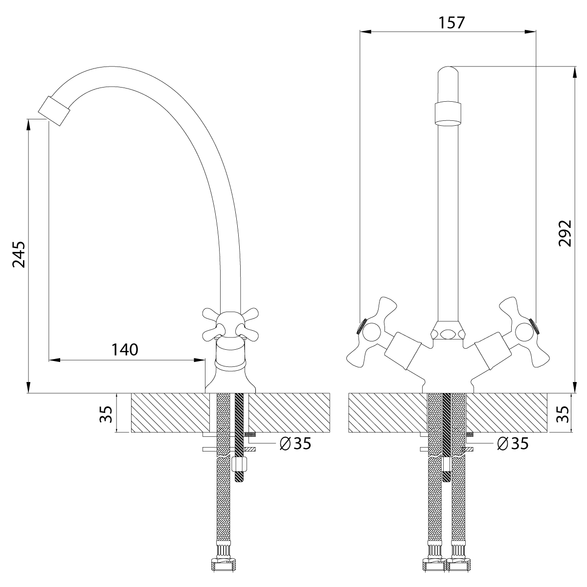 В комплекте: Пластиковый аэратор с функцией легкой очисткиКерамические вентильные головки Гибкая подводка 30 см – 2 шт.Присоединительная группа для горизонтального крепления Металлические рукоятки