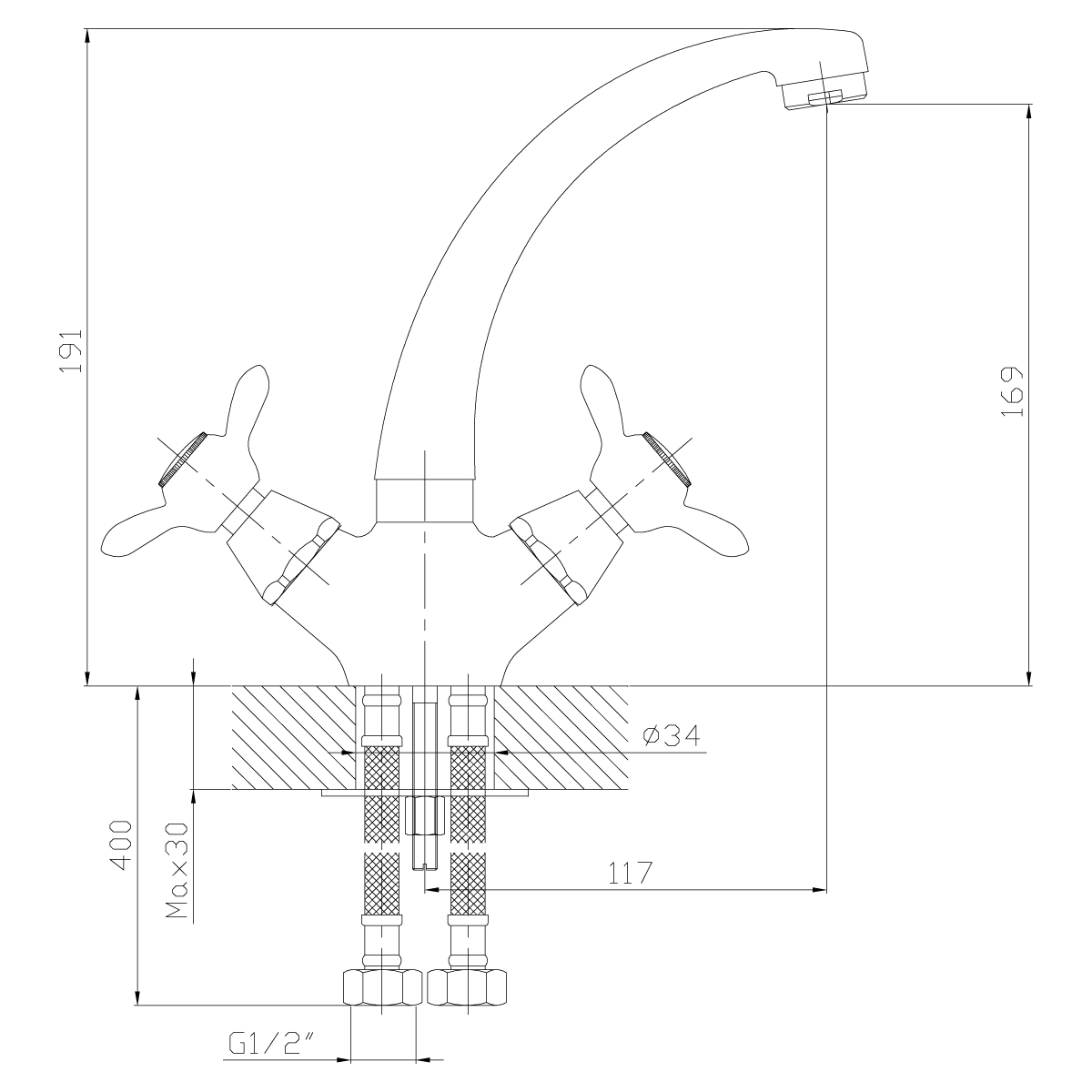 В комплекте: Пластиковый аэратор с функцией легкой очисткиКерамические вентильные головки Гибкая подводка 35 см – 2 шт.Присоединительная группа для горизонтального крепления Металлические рукоятки