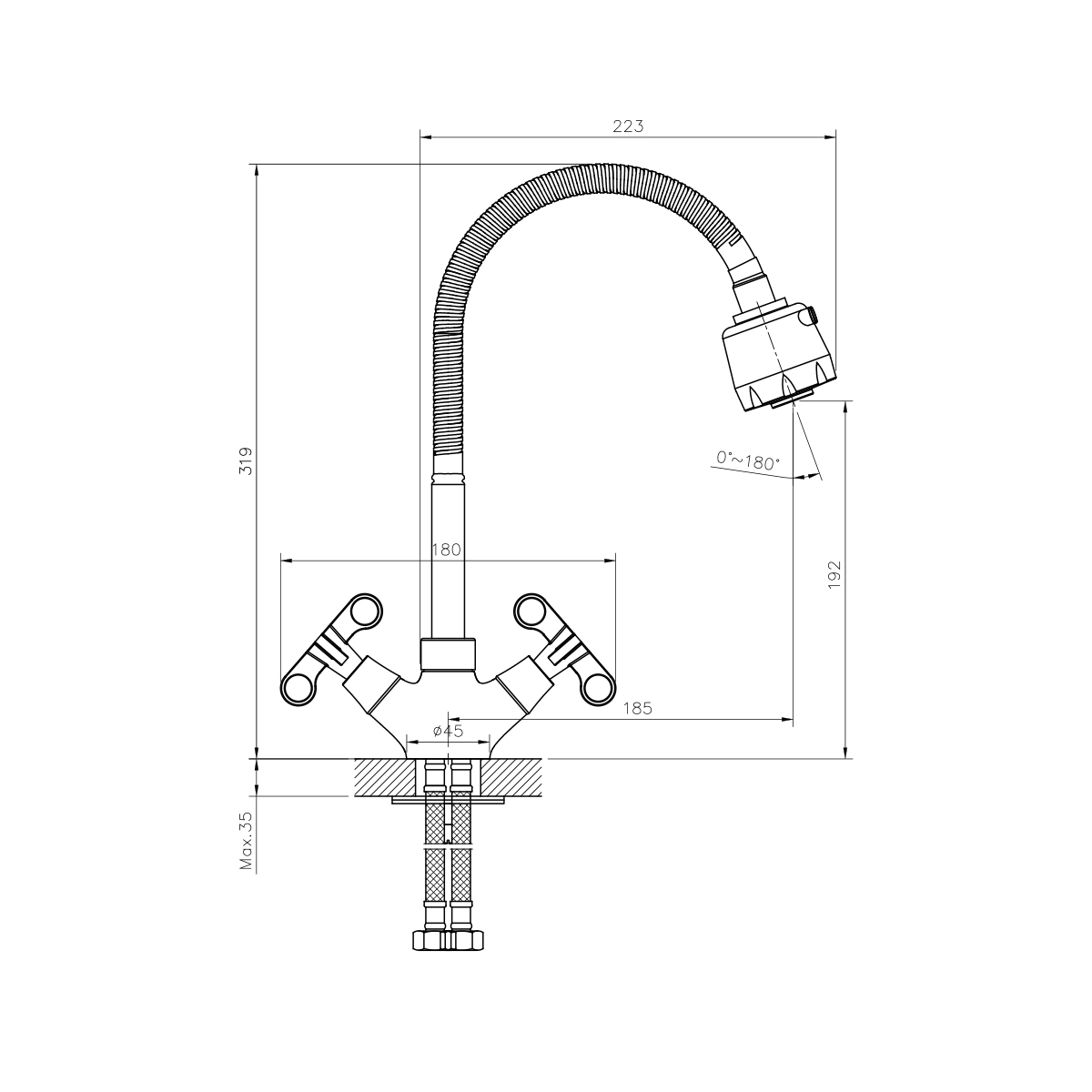 В комплекте:2-х функциональный пластиковый аэратор с функцией легкой очисткиКерамические вентильные головки (угол поворота - 90⁰) Гибкая подводка 1/2" 40 см – 2 шт.Присоединительная группа для настольного крепления Металлические рукоятки