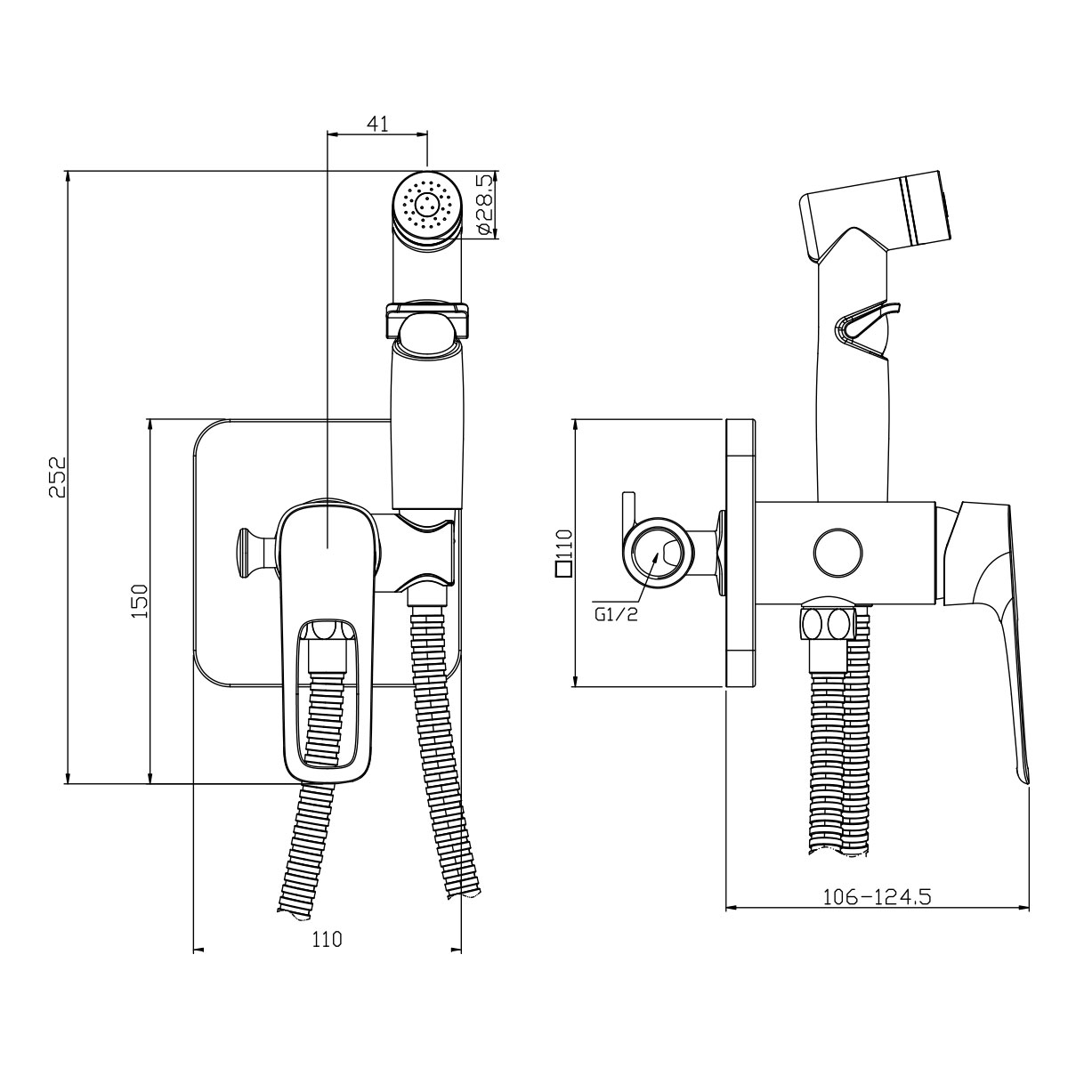 В комплекте: Керамический картридж 25 мм Аксессуары в комплекте (шланг 1,2 м, лейка гигиенического душа с регулятором напора воды) Металлическая рукоятка