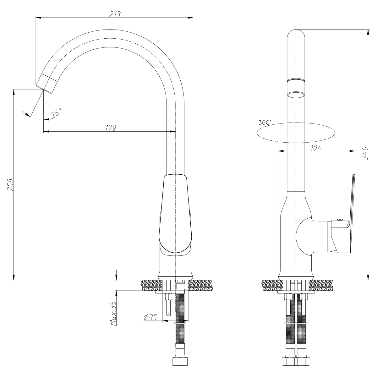 В комплекте: Пластиковый аэратор с функцией легкой очисткиКерамический картридж 35 мм Гибкая подводка 30 см – 2 шт.Присоединительная группа для горизонтального крепления Металлическая рукоятка