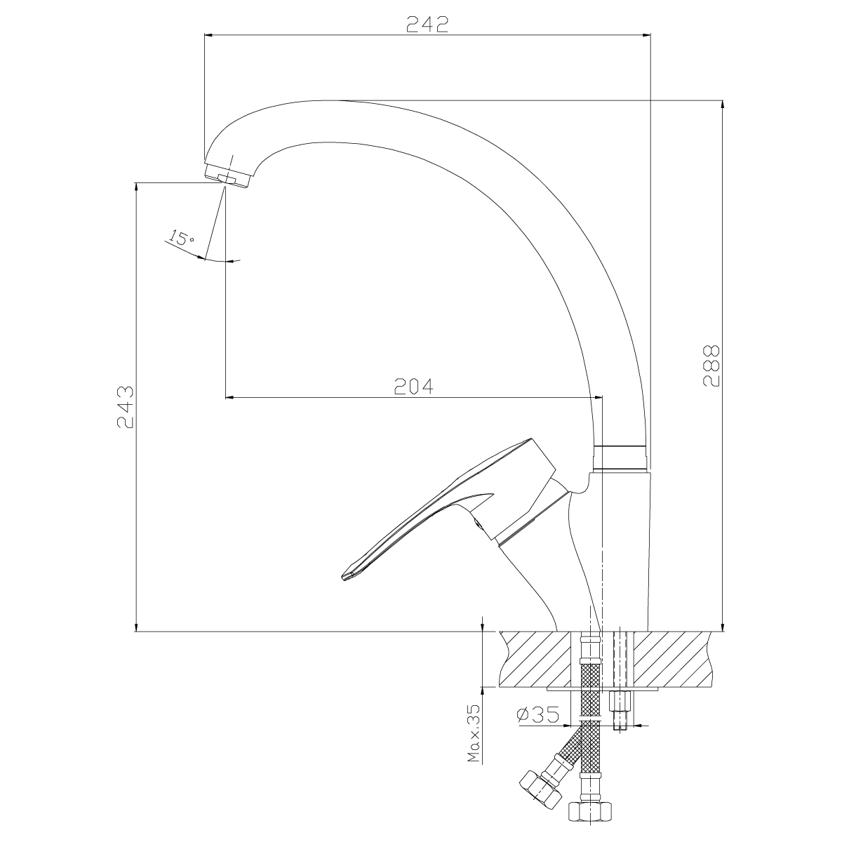 Высота излива, см