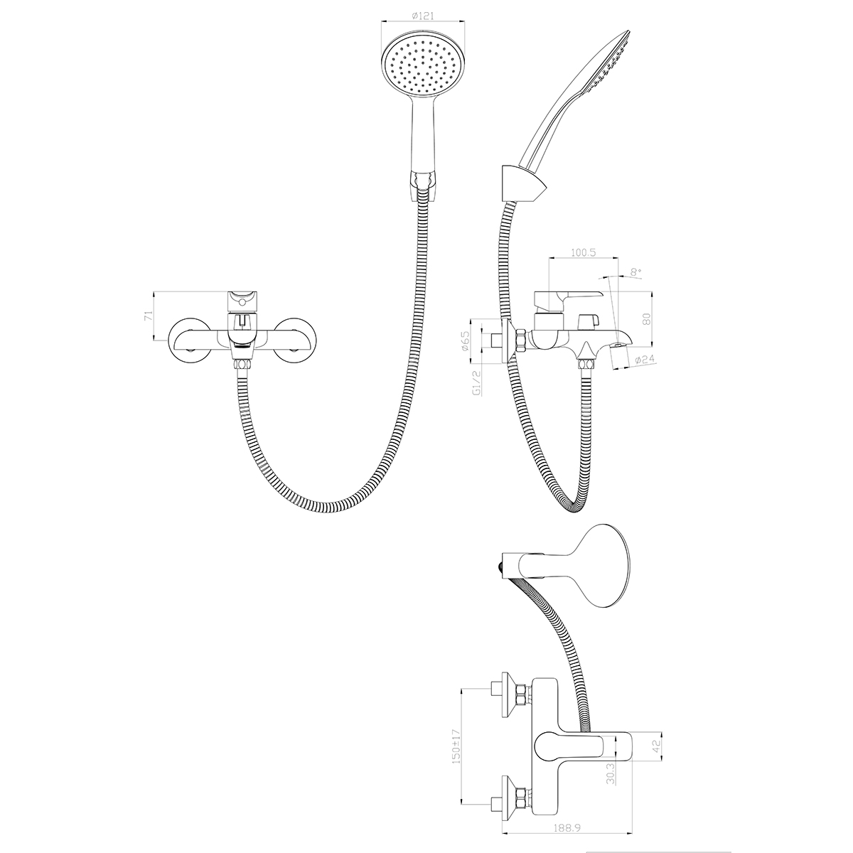 В комплекте: Пластиковый аэратор с изменяемым углом подачи водыКерамический картридж 35 мм Переключатель с керамическими пластинами (угол поворота - 90°) Аксессуары в комплекте (душевой шланг 1,5 м, 1-функциональная лейка Ø121х250 мм с функцией легкой очистки, 3-позиционное настенное крепление) Присоединительная группа (эксцентрики ½” с отражателями) для вертикального крепления Металлическая рукоятка