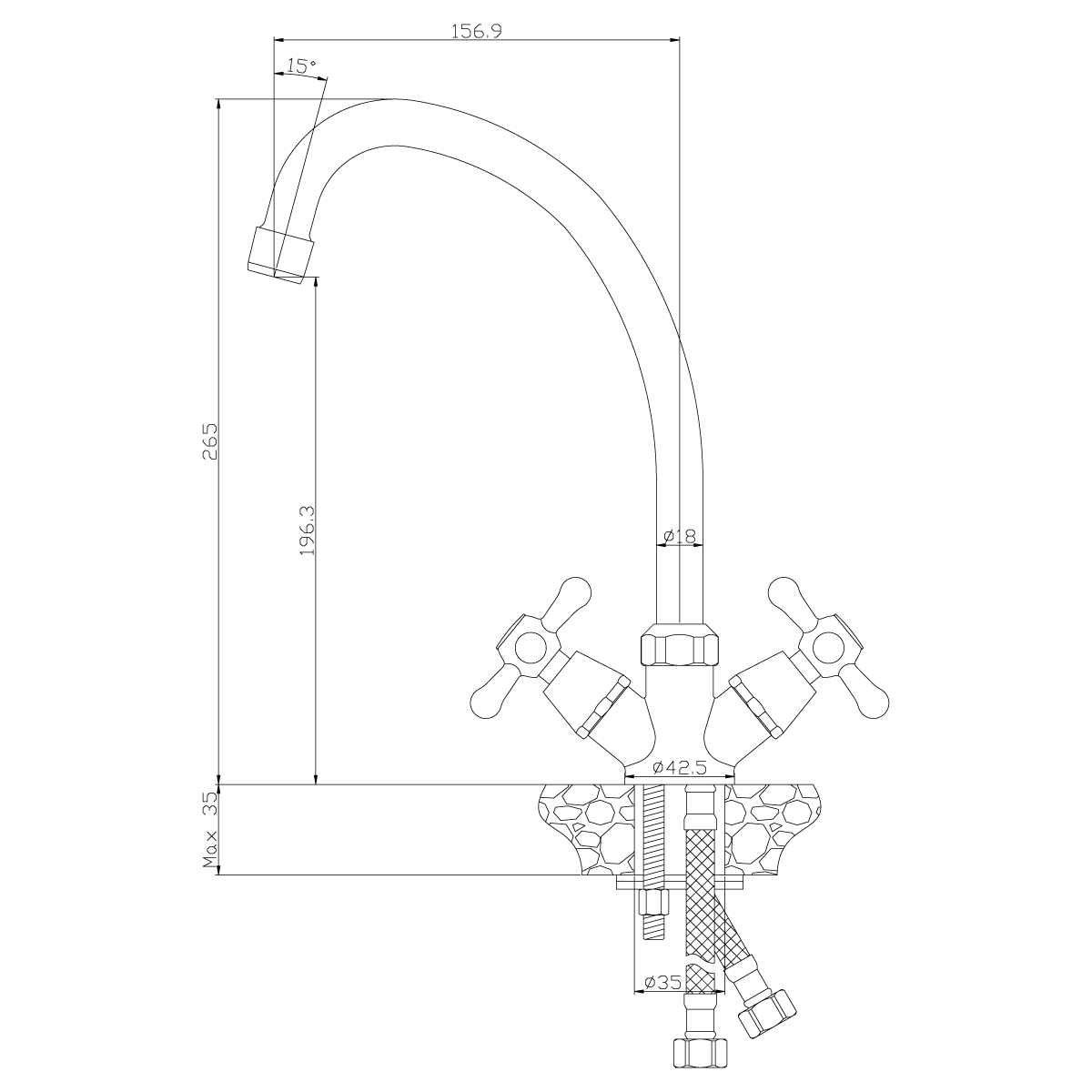 В комплекте: Пластиковый аэратор с функцией легкой очисткиКерамические вентильные головки Гибкая подводка 30 см – 2 шт.Присоединительная группа для горизонтального крепления Металлические рукоятки