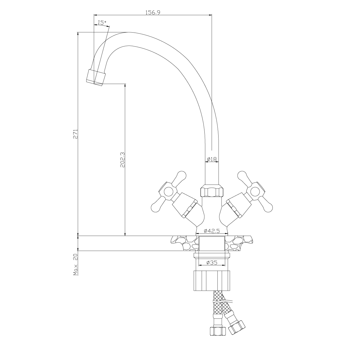 В комплекте: Пластиковый аэратор с функцией легкой очисткиКерамические вентильные головки Гибкая подводка 30 см – 2 шт.Присоединительная группа для горизонтального крепления Металлические рукоятки