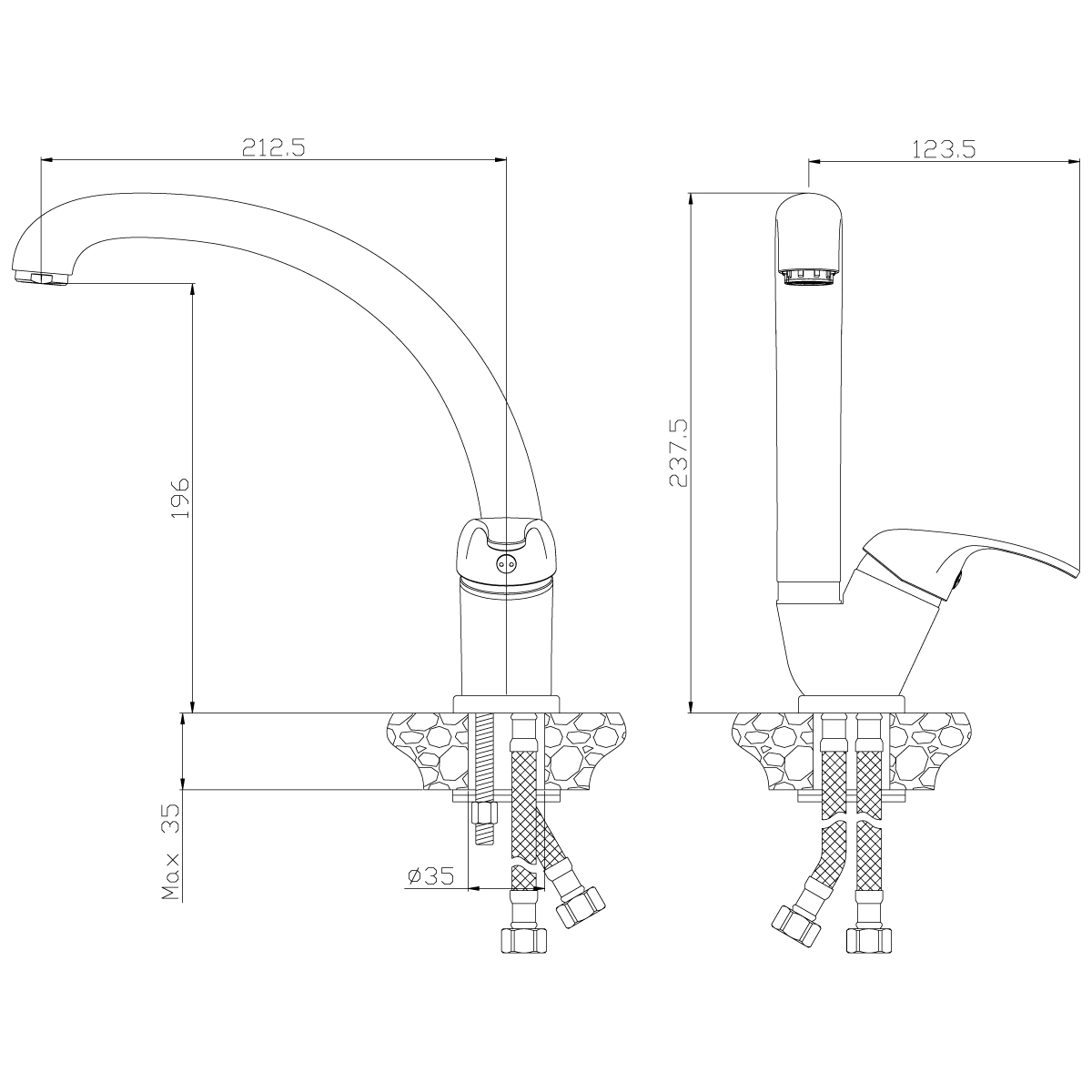 В комплекте: Пластиковый аэратор с функцией легкой очисткиКерамический картридж 35 мм Гибкая подводка 30 см – 2 шт.Присоединительная группа для горизонтального крепления Металлическая рукоятка