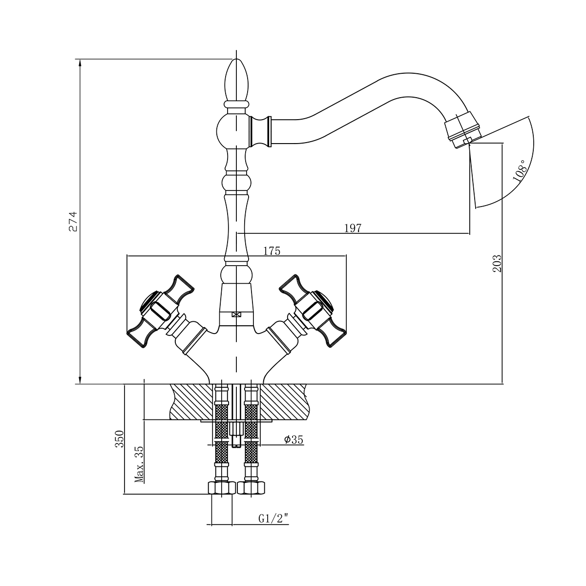 В комплекте: Пластиковый аэратор с функцией легкой очисткиКерамические вентильные головки Гибкая подводка 35 см – 2 шт.Присоединительная группа для горизонтального крепления Металлические рукоятки