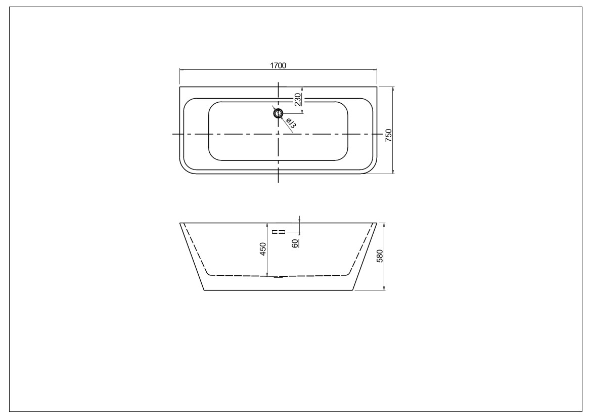 | Расположение перелива: по центру |