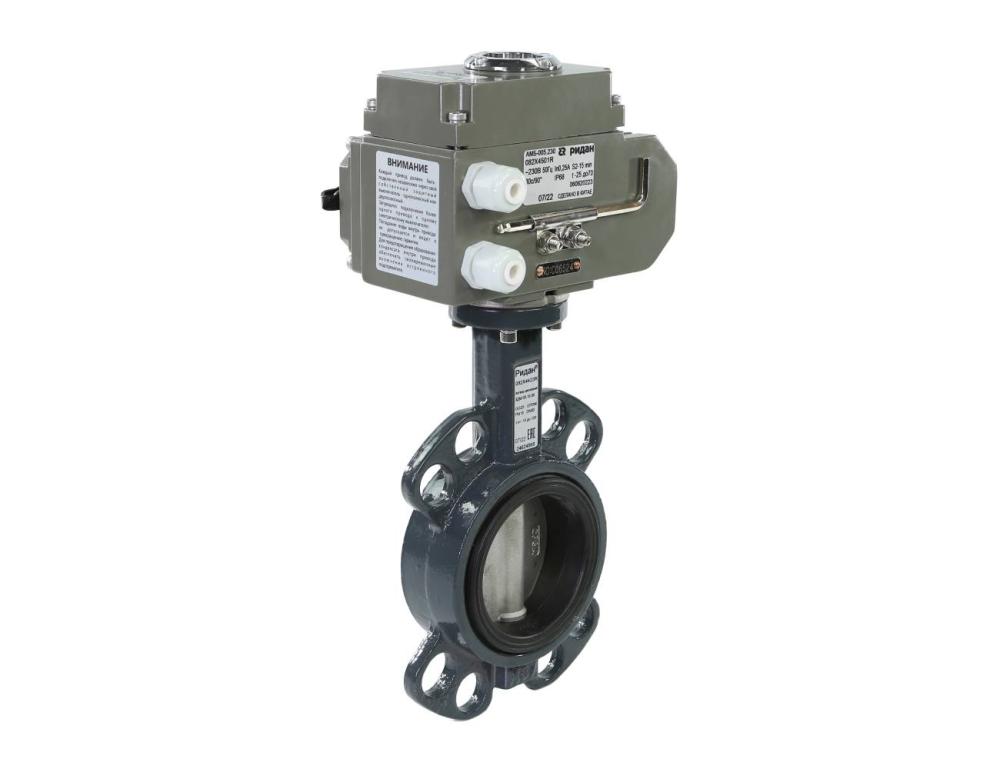 —Затвор дисковый с электроприводом Ridan 082X4402R ЗДМ + 082X4511R АМБ + 082X4483R переходник 9/14 мм; DN 65 PN 16, Т= - 15°C до 120 °С, межфланцевый, АМБ 24 В переменный ток, EPDM, корпус-чугун, диск-чугун