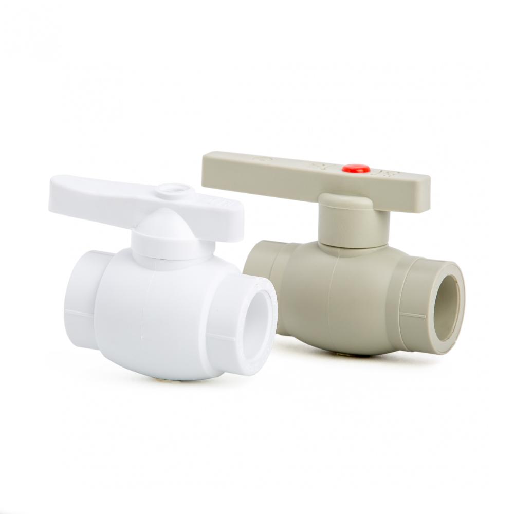В качестве материала исполнения корпуса применен полипропилен, за счет чего кран сочетает малый вес, высокую прочность и термостойкость; это кран для воды горячей и холодной. Гигиеничный материал подходит для применения в системе питьевой воды. Для монтажа применен раструбный способ.