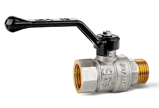 Кран шаровой LD Pride латунный никелированный полнопроходной ДУ 50, Ру 25, внутренняя-наружная, рукоятка-рычаг черный (Pride 47.50.В-Н.Р)