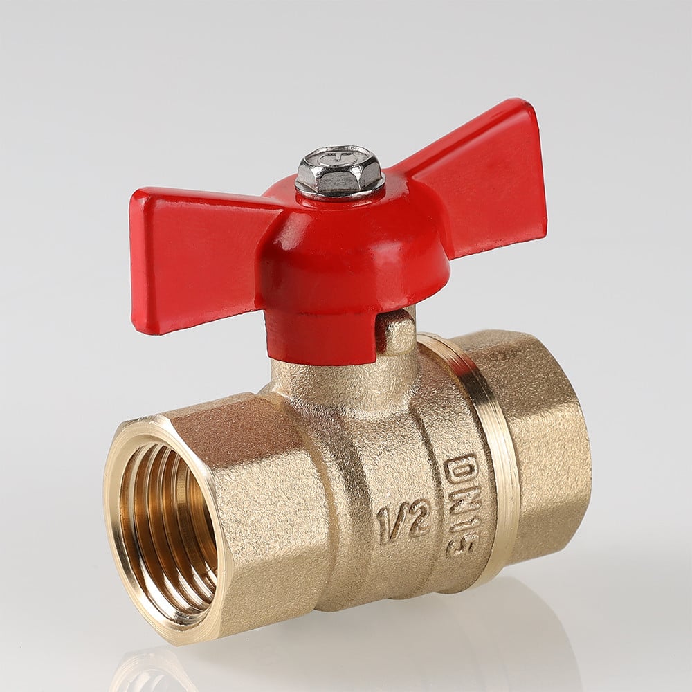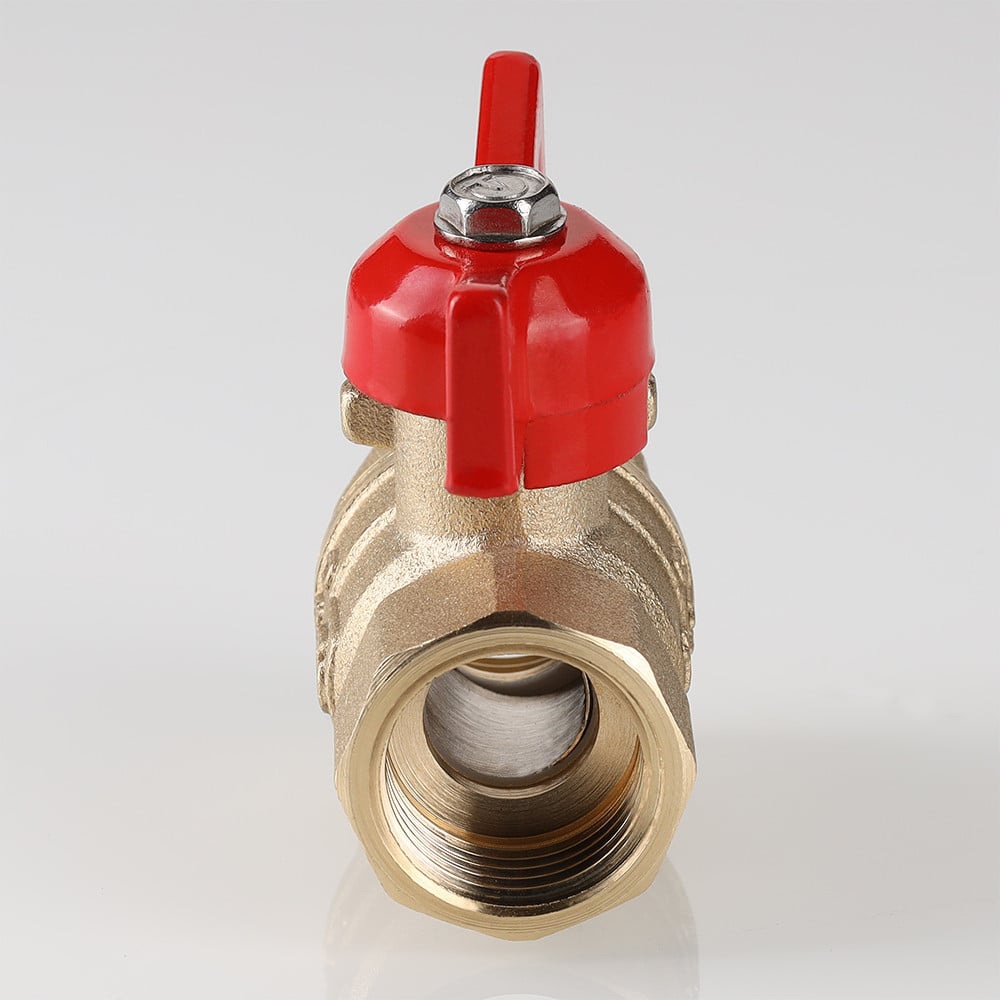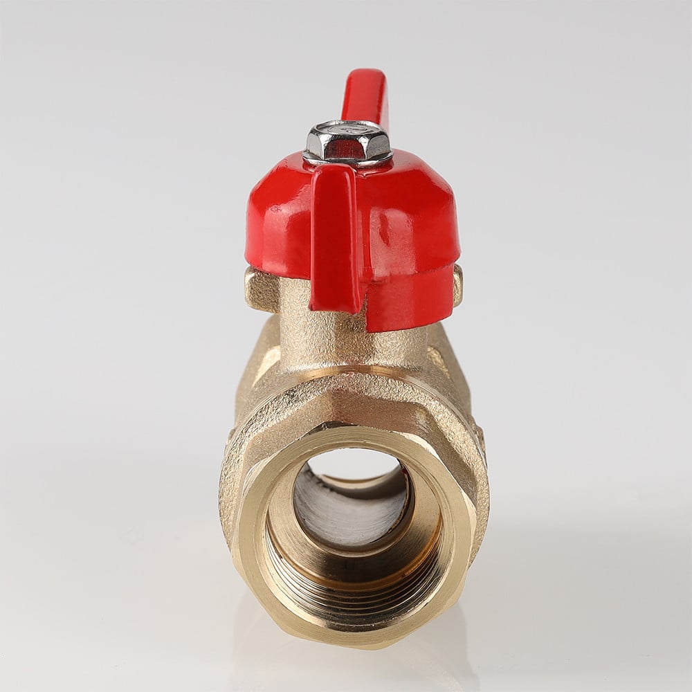 (VT.122.GN) Ремонтопригодный шаровой кран стандартного ресурса. Выполнен из из латуни марки ЛЦ40Сд (ГОСТ 17711-93). Кран оснащен ручкой типа «бабочка», изготовленной из силумина марки АК7 (ГОСТ 1583-93) с покрытием эпоксиполиэфирной порошковой композицией красного цвета. Резьба присоединений: внутренняя–внутренняя.