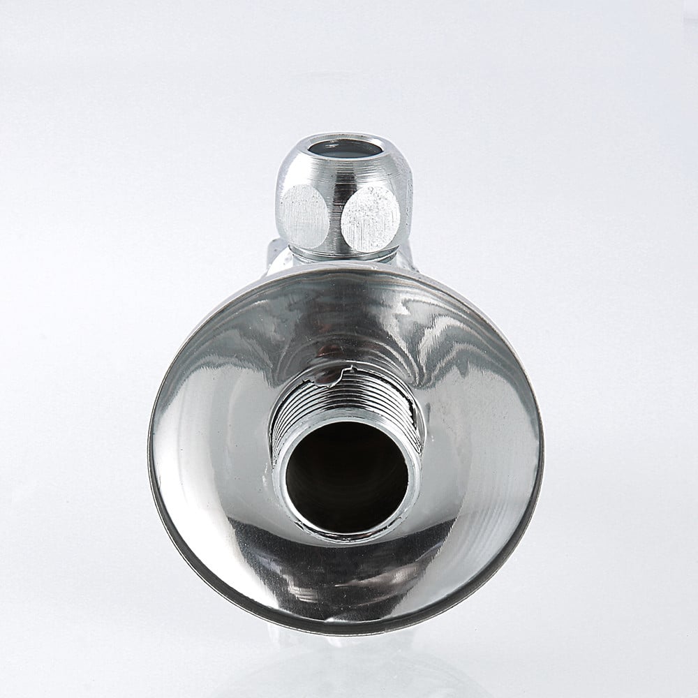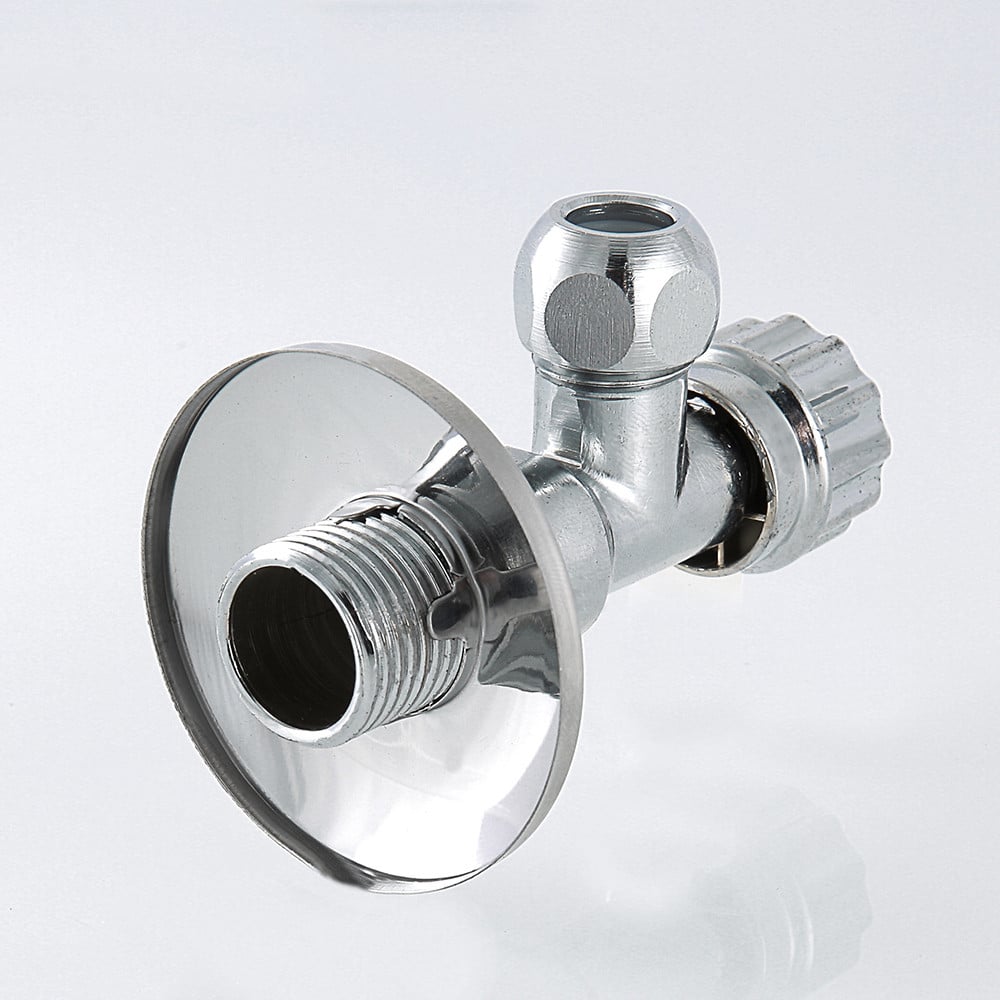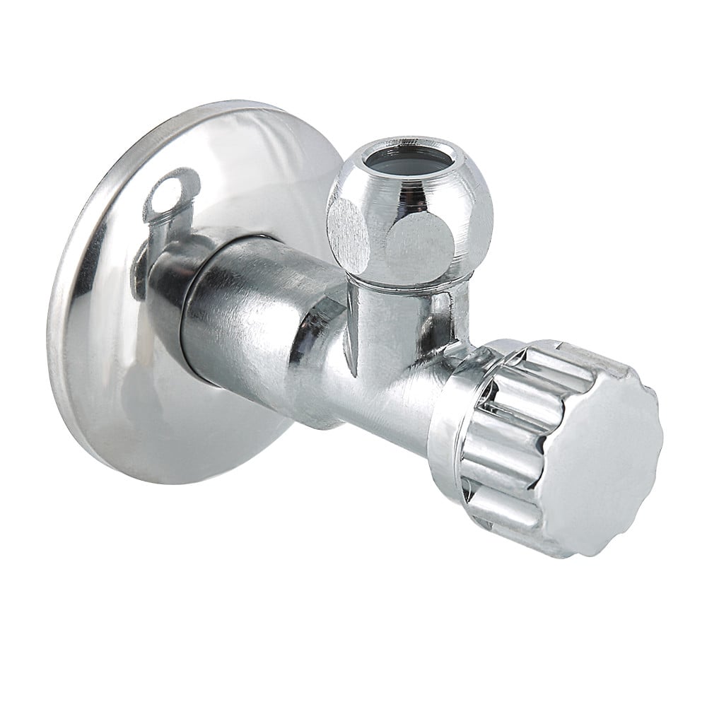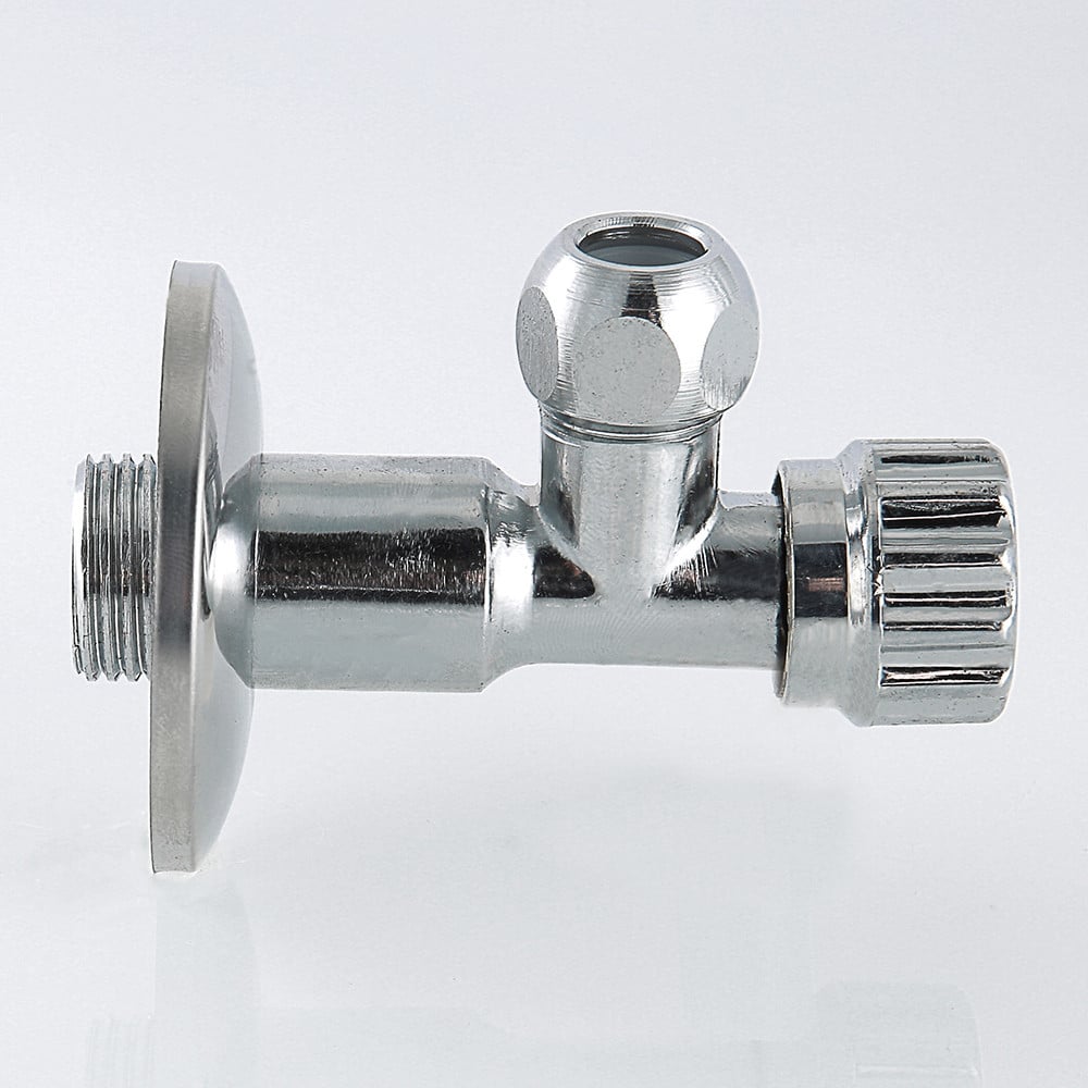 (VT.281.N) Кран шаровой угловой VT.281 предназначен для подключения к водопроводной сети смесителей с жесткими штанговыми подводками с внешним диаметром 10 мм. Позволяет перекрывать подачу воды к потребителю. Неремонтопригодный. Резьба присоединений – наружная/наружная. Патрубок подключения к смесителю снабжен латунной никелированной накидной гайкой. Герметизация соединения обеспечивается обжатием тефлонового уплотнительного кольца. Предусмотрена декоративная чашка. Использовать кран можно при температуре от –10 до +80 °С и давлении до 8 бар. Средний полный ресурс – 2 тыс. циклов. Условный диаметр – 1/2". Использование шарового крана для регулирования потока воды не допускается