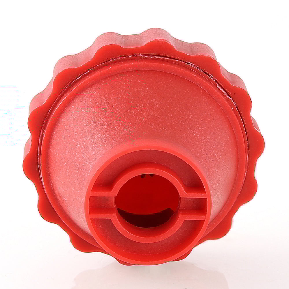 Корпус и крышка рукоятки шарового крана с плавным управлением выполнены из окрашенного в красный цвет пластика ABS (ударопрочная техническая термопластическая смола), шестерни планетарного редуктора – из нейлона (полиамид).