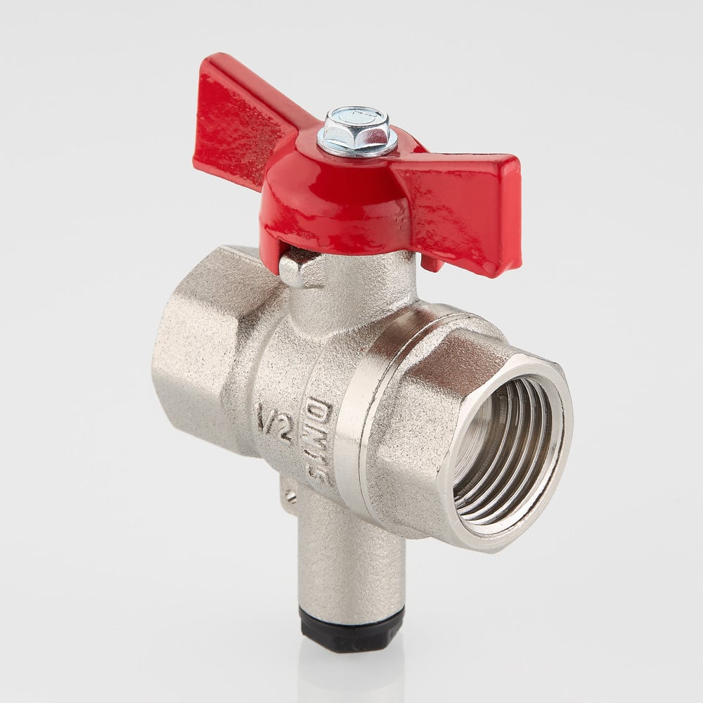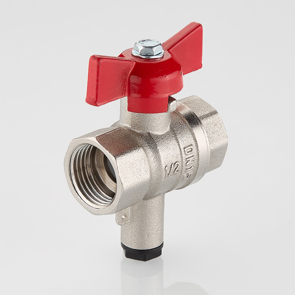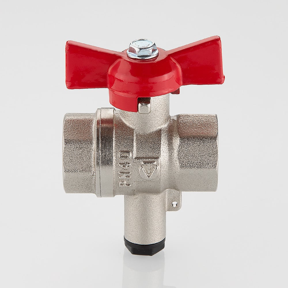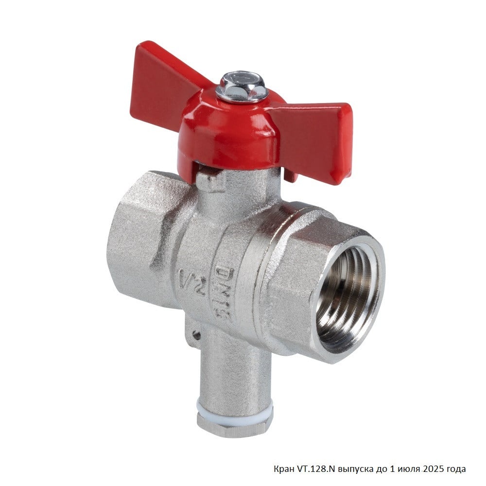 Шаровой кран VT.128.N оснащен силуминовой ручкой-бабочкой с эпоксидной эмалевой окраской. Кран оснащен штуцером для подключения датчика температуры погружного типа. Применяется в составе узлов учета расхода тепловой энергии и арматурных модулей для водяного теплого пола. Допустимая температура рабочей среды для данного крана – от +1 до +110 °С.