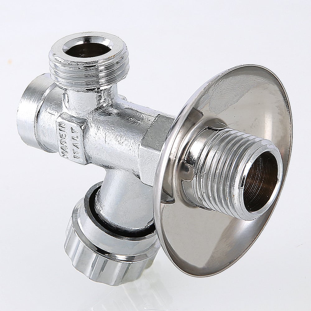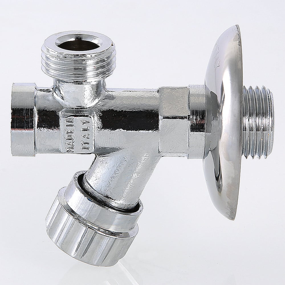 (VT.282.GBC) Вентиль VT.282.GBC предназначен для подключения к водопроводной сети сантехнических приборов. Вентиль позволяет перекрывать и регулировать подачу воды к потребителю и оснащен фильтром механической очистки. Неремонтопригодный. Резьба присоединений – наружная/наружная. Патрубок подключения к смесителю (модель 1/2" х М10) снабжен латунной никелированной накидной гайкой. Предусмотрена декоративная чашка. Диаметр резьбы подключения к трубопроводу – 1/2".